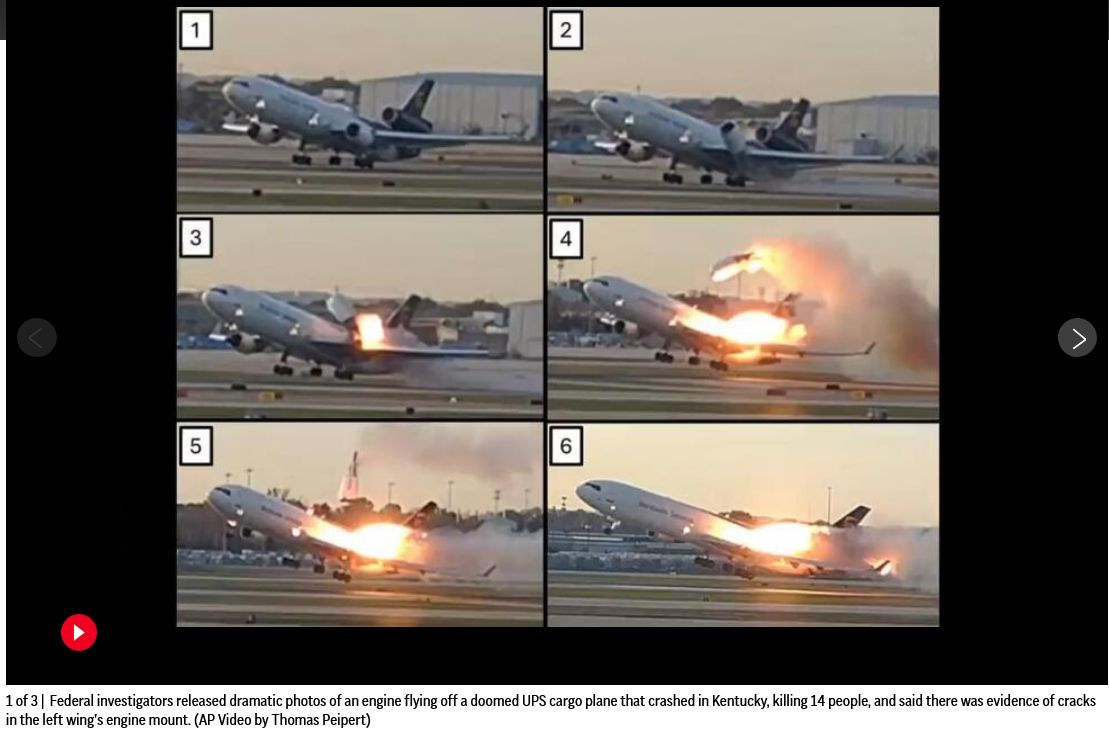 Related: Editorials & Other Articles, Issue Forums, Alliance Forums, Region ForumsInvestigators say UPS plane that crashed in Kentucky, killing 14, had cracks in engine mount