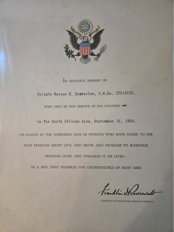I'm in tears tonight. Read the words on this certificate, signed by FDR, given to my grandmother when her (Original Post)