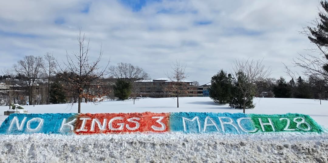 Authoritarian regimes thrive on division and isolation. When we build community around defiance, laughter, and spontaneous acts of snow sculpture, we're signaling our refusal to comply, making clear that no one's alone, and offering a promise that we'll build that better, more democratic future, together. (And, in this case, letting everyone in Chippewa Falls know that No Kings is almost here!).