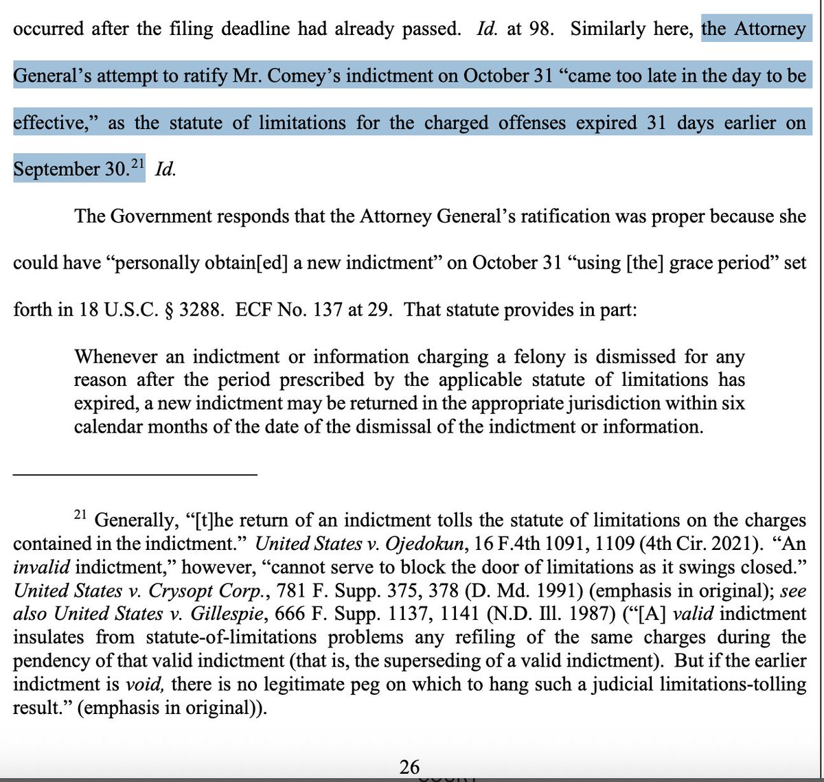 (173,120 posts)BREAKING: Comey case dismissed without prejudice. Halligan invalidly appointed, judge rules. storage.courtlistener.com/recap/gov.us...