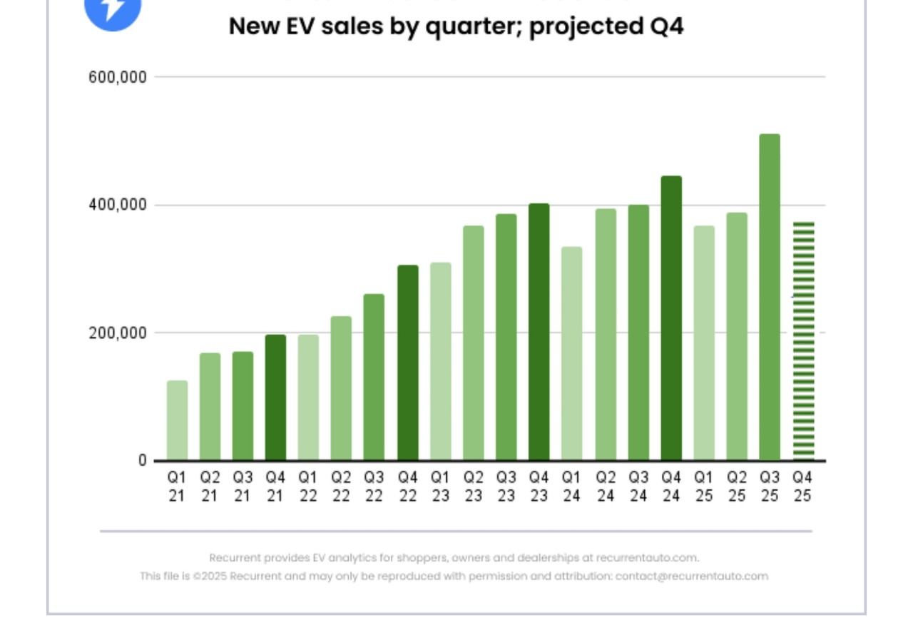 On September 30, 2025, all federal tax credits for used, new, and leased electric vehicles ended. So it was no surprise, then, that Q3 of 2025 saw record sales for new and used PHEVs and BEVs, as people moved up their EV purchases to take advantage of the $7,500 tax credit. Total EV sales then plummeted in Q4 of 2025.